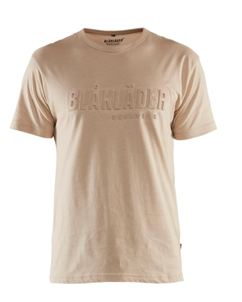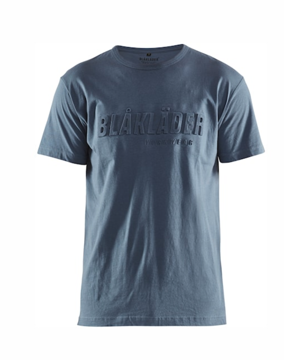 Stylisches Baumwoll-T-Shirt mit einem noch attraktiveren 3D-Druck auf der Brust mit der Aufschrift "Blåkläder". Ideal für das Tragen sowohl im Büro als auch in der Freizeit und außerdem zeigt es, dass Sie einen ausgezeichneten Geschmack für Arbeitskleidung haben.